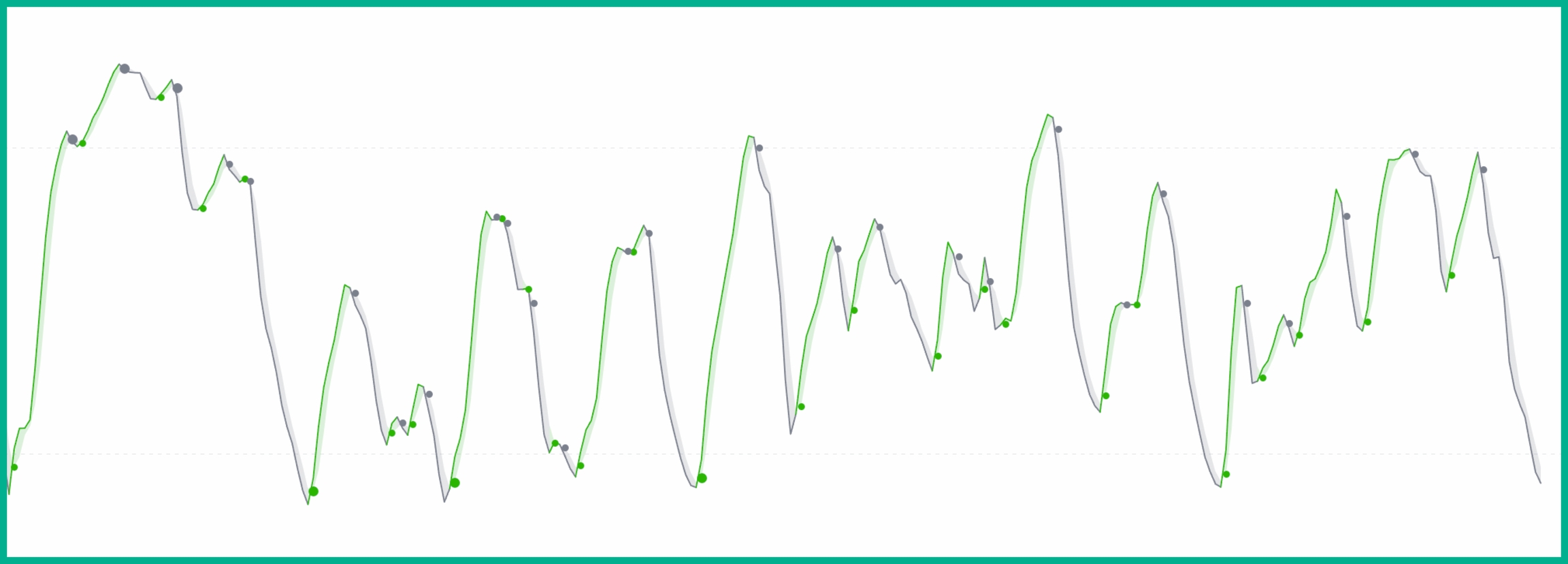 当超波与其信号线交叉时转折点会出现;默认情况下信号线上方交叉的超波以绿色高亮显示,而在信号线下方交叉的超波以红色高亮显示。