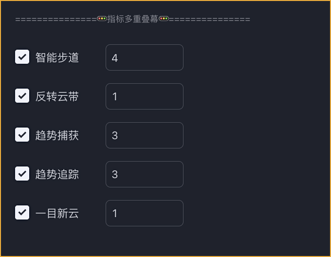 **每层叠加指标允许用户进行调控，参数值越大鉴别趋势越长。**