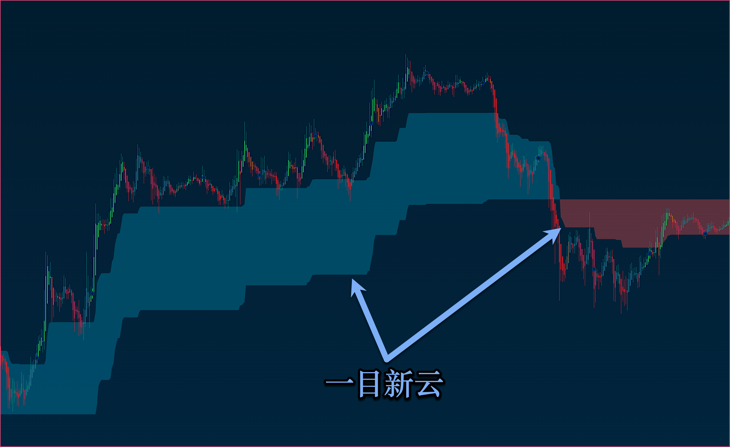 {% hint style="info" %} <mark style="color:blue;">**一目新云：一目新云与一目均衡 Ichimoku Cloud 云带的效果类似；**</mark>\ <mark style="color:blue;">**对于一目均衡的基础知识我们的YouTube网站有期视频详细介绍过，用户可前去观看；**</mark>\