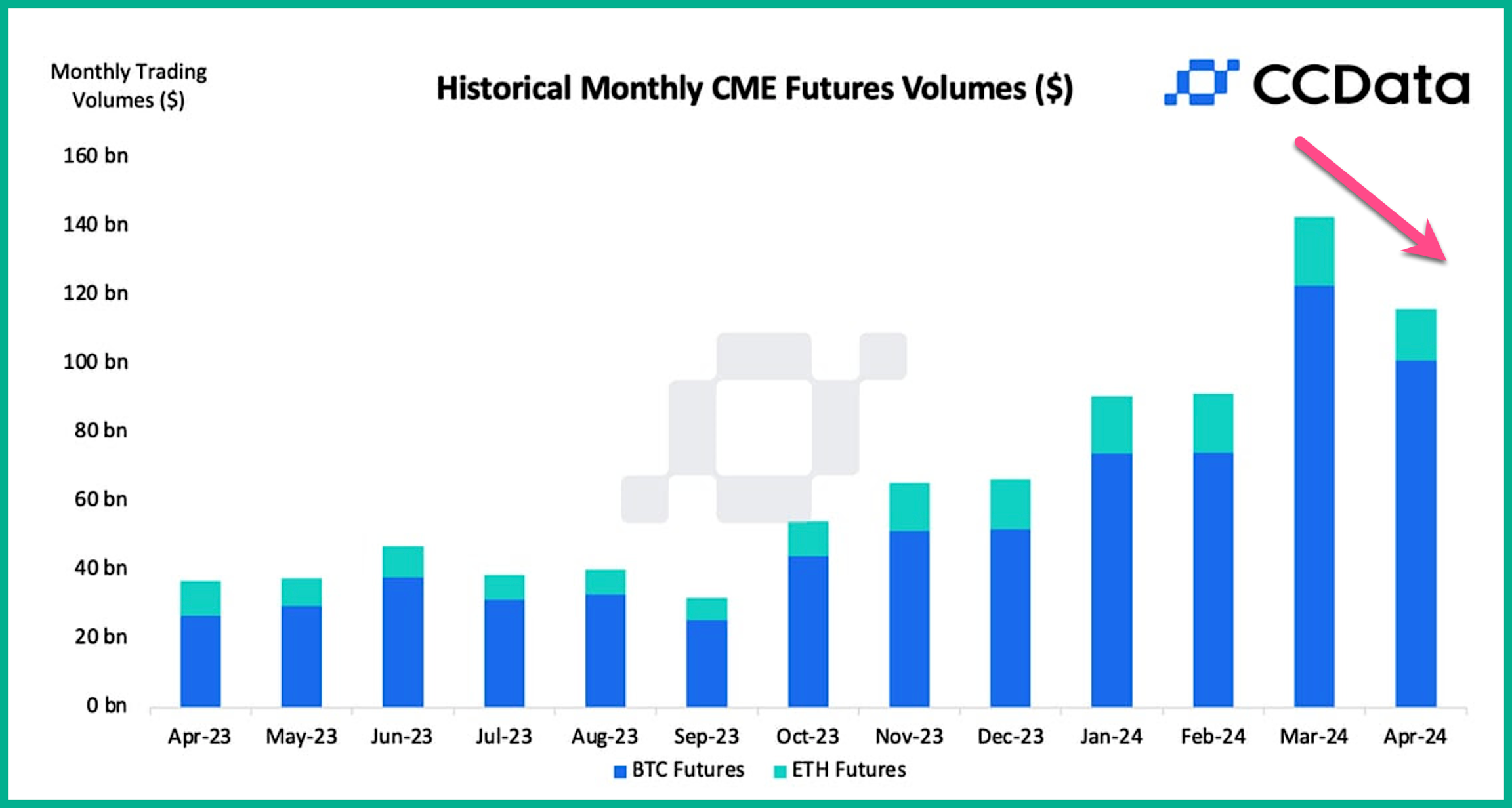 不管是中东地缘政治爆发还是比特币减半事件的影响,在过去的四月份,所有加密货币中心化交易所的现货和衍生品的总交易量下降了 43.8%! 现货比特币 ETF也出现净流出现象,主流的加密货币几乎也回吐了三月份的所有涨幅, 中心化交易所交易量下降是七个月以来的首次: